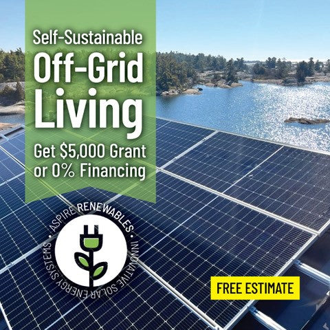 Make off-grid living more attainable with Aspire Renewables! You may be eligible for additional government grants for your solar panels or battery storage.